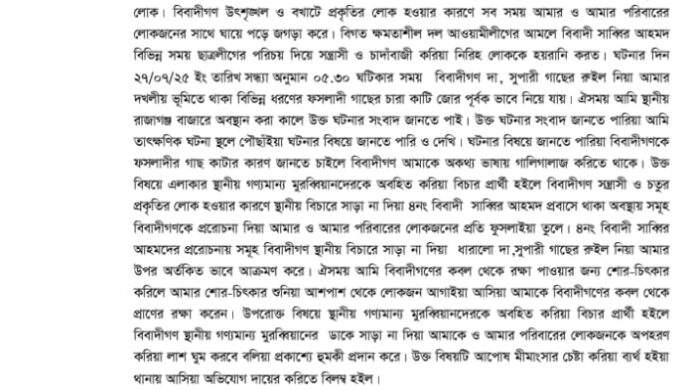 সিলেটের কানাইঘাট উপজেলার রাজাগঞ্জ ইউনিয়নের লামাপাড়া গ্রামের এক মুদি দোকানদের পরিবারের ওপর প্রাণনাশ ও লাশ গুম করার হুমকি দিয়েছে সিলেট মহানগর ৪নং ওয়ার্ডের সাবেক পলাতক ছাত্রলীগ সভাপতি সাব্বির আহমেদ (৩৩)