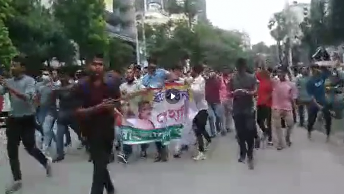 রাজধানীর ধানমন্ডি ২৭ নম্বরে মিছিল করেছেন কার্যক্রম নিষিদ্ধ আওয়ামী লীগের নেতাকর্মীরা। মিছিল থেকে ককটেল বিস্ফোরণের ঘটনাও ঘটেছে। প্রত্যক্ষদর্শীরা জানান, রোববার (৩১ আগস্ট) বিকেল সাড়ে ৩টার দিকে ধানমন্ডি ২৭ নম্বর এলাকায়